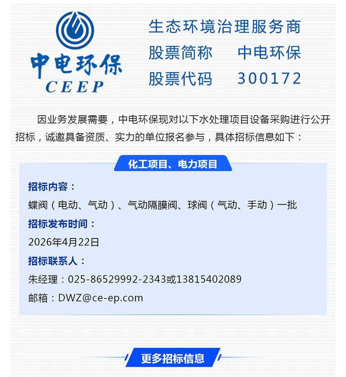 中電環(huán)保股份有限公司是南京市首家環(huán)保上市公司(股票簡稱:中電環(huán)保,股票代碼:300172),南京環(huán)保產(chǎn)業(yè)協(xié)會會長單位,國家級聯(lián)盟理事長單位,是生態(tài)環(huán)境治理服務(wù)商,主營(3+1):水務(wù)、固危廢、煙氣治理及產(chǎn)業(yè)創(chuàng)新平臺,包括:工業(yè)水處理、污水處理及水環(huán)境綜合治理;固危廢土壤、污泥餐廚垃圾處理;煙氣及VOCS治理;智慧環(huán)保;高端裝備等。